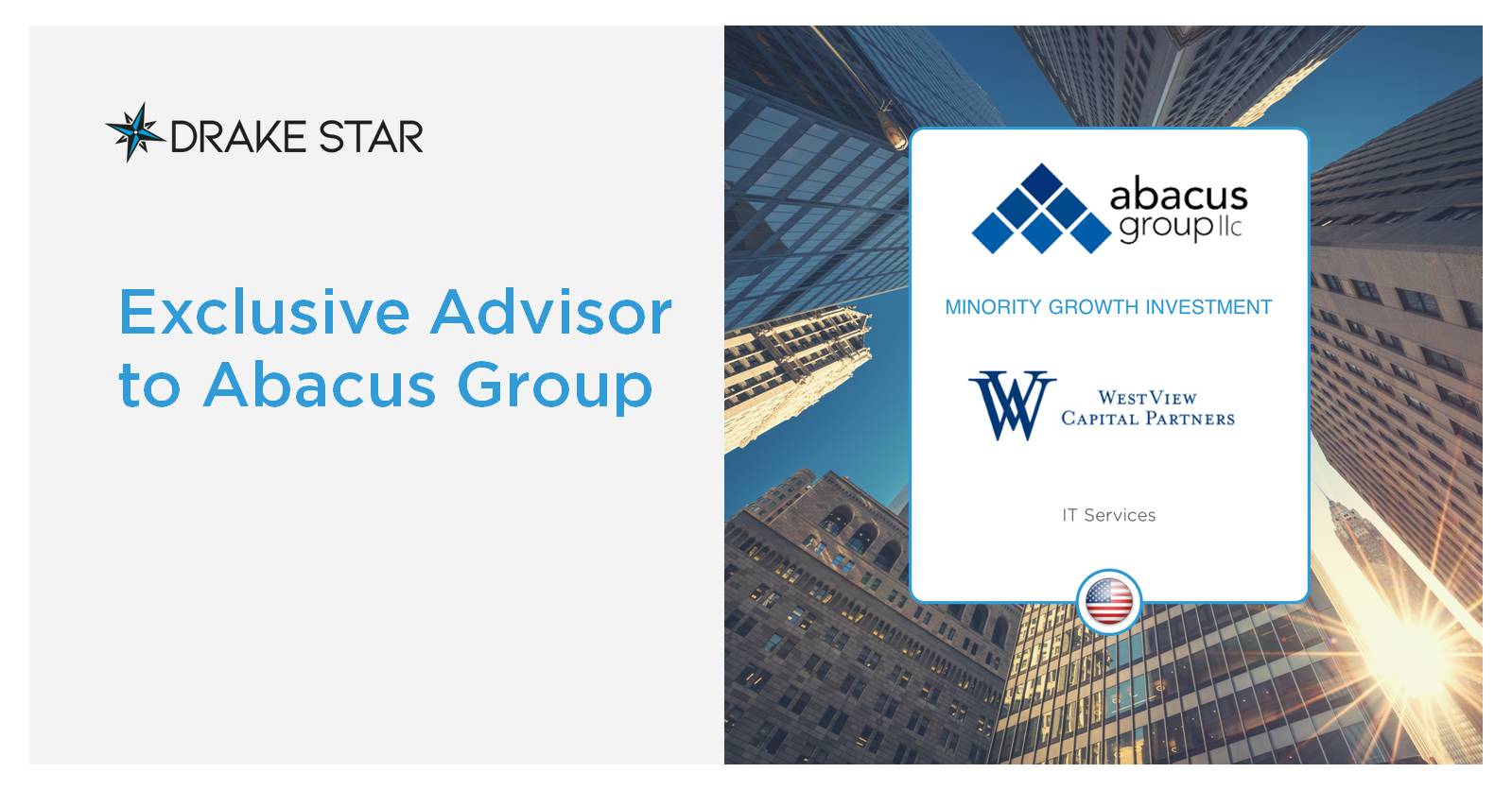 NEW YORK | August 1, 2017 – Abacus Group, LLC, a financial services focused IT solutions company, announced an investment from WestView Capital Partners to support its rapid growth as Abacus looks to maintain its leadership position and expand into new markets. Drake Star Partners acted as an exclusive financial advisor to Abacus Group on this transaction.
