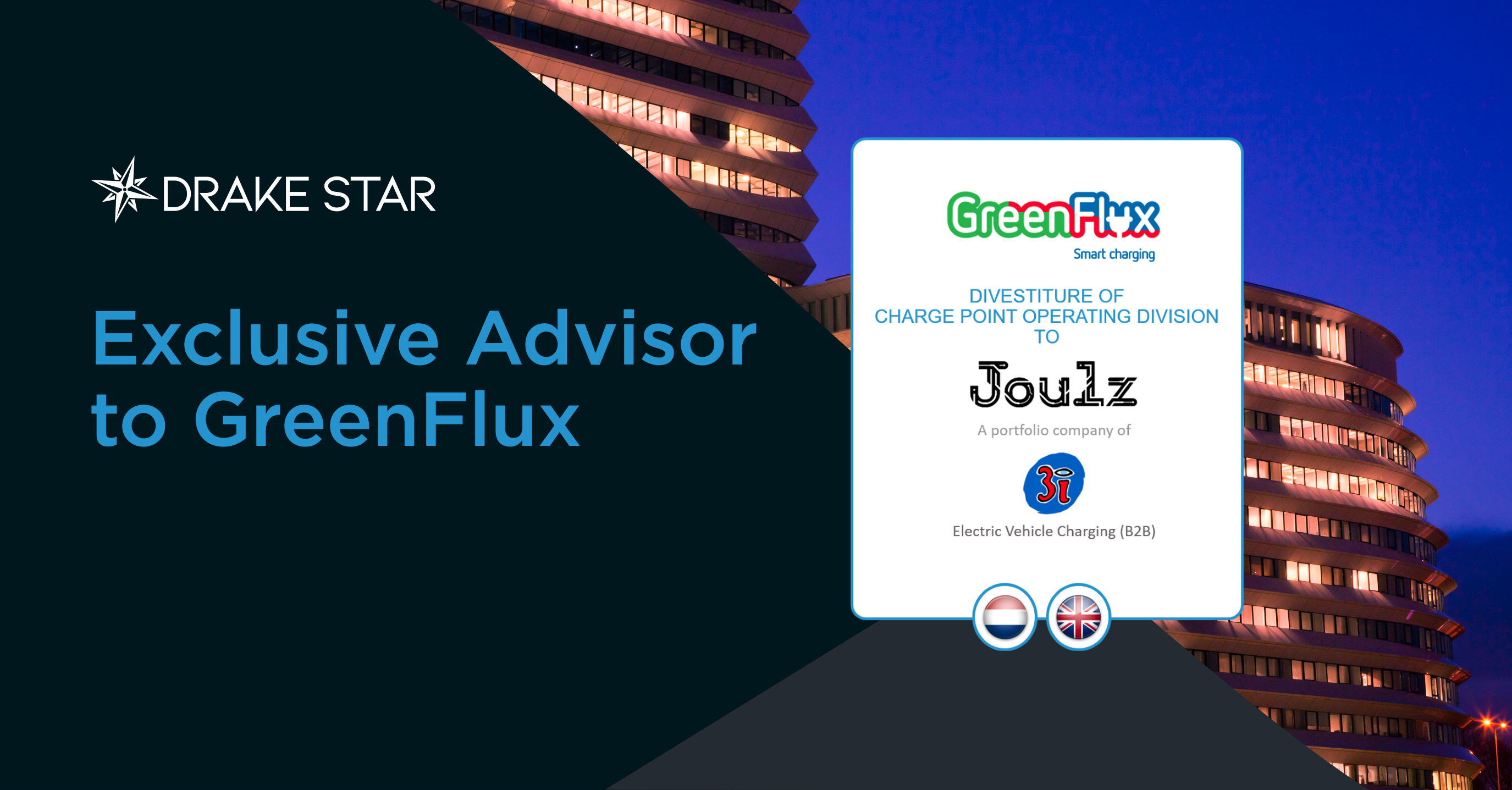 Drake Star Partners added: “GreenFlux is an industry-leading EV charging solution provider. The company has a secure technology platform serving Charge Point Operators. On top, GreenFlux has founded a robust business unit executing Charge Point Operating services in the B2B segment and focussed on the larger & complex projects. The current market dynamics require additional focus and, therefore, GreenFlux decided to divest its Charge Point Operating business unit, including a portfolio of > 3.000 charge points. The divesture allows GreenFlux to continue its focused growth strategy and invest in its technology roadmap. Also, Joulz – as an energy transition infrastructure player – is a great strategic partner for GreenFlux’s technology platform.
