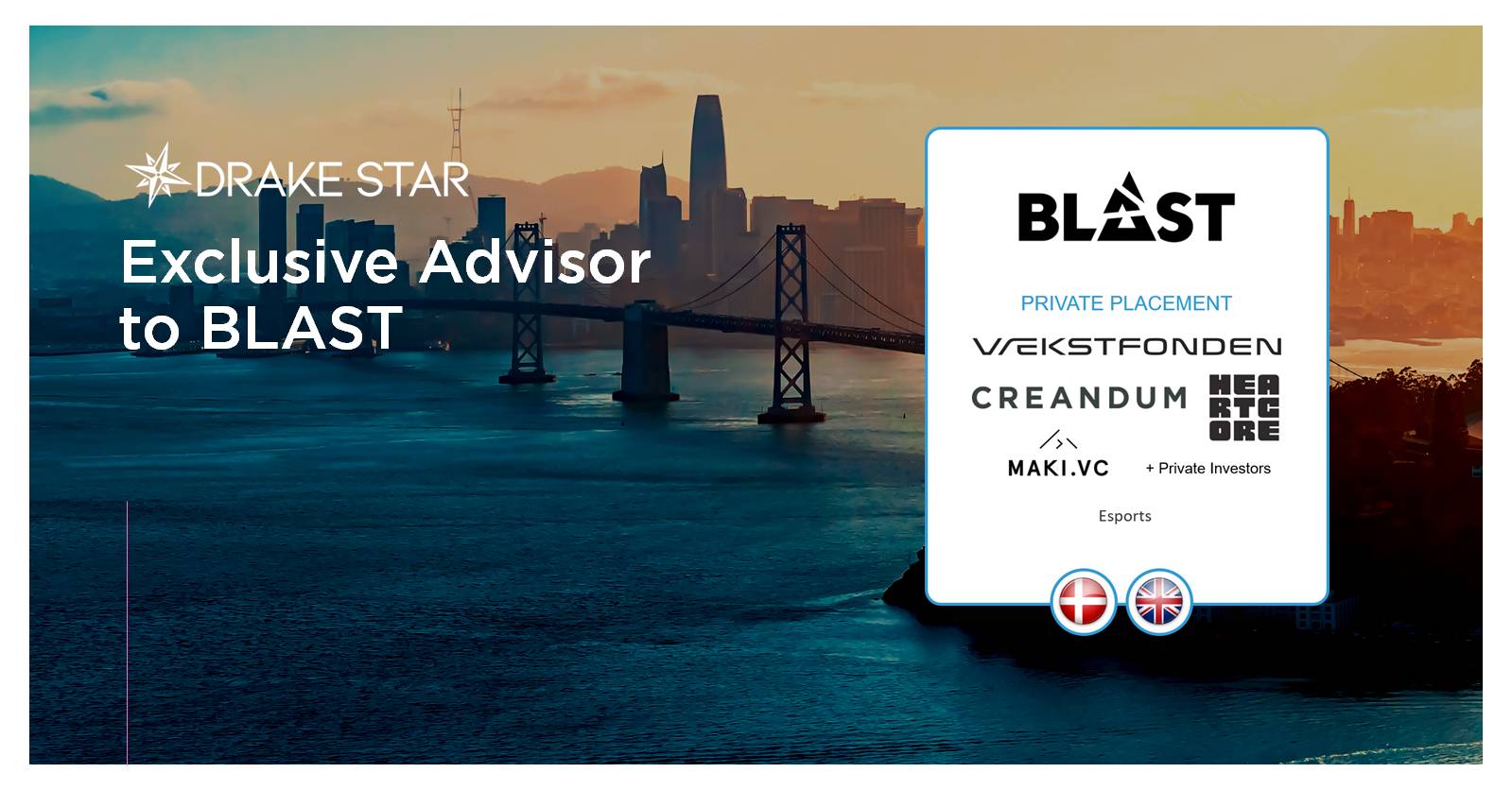 Kasper Kruse Petersen, Partner at Drake Star Partners, said: “We are proud to have worked with BLAST on securing funding for the next stage of the Company’s growth story. Robbie and the team have created a highly unique media proposition that is connecting esports to the mainstream, and we look forward to seeing the business develop into the leading global esports media network. The deal is a landmark transaction for Drake Star Partners in the sports tech / esports space, as we look to leverage our expertise in the wider sports tech sector to help current and future clients."