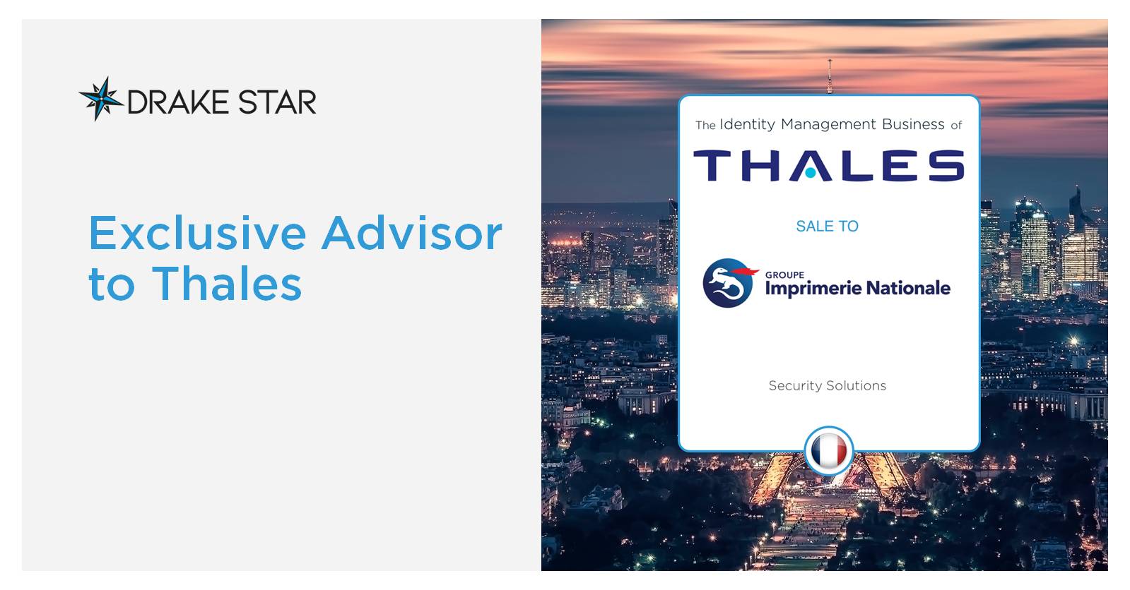 Drake Star Partners Advises Thales on the Sale of its Biometric Business to Imprimerie Nationale Group