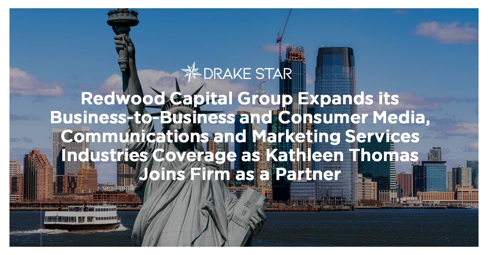 Redwood Capital Group’s CEO & Managing Partner, Gregory Bedrosian, said, “We are delighted to have Kathleen join Redwood Capital as a Partner in our growing firm.” Mr. Bedrosian continued, “The business-to-business and consumer media, communications and marketing services industries are core areas of expertise for Redwood’s sector-focused investment banking coverage. Kathleen’s track-record and relationships in these key industries across the U.S. and globally allow Redwood to broaden and deepen our firm’s offering to our clients worldwide.”